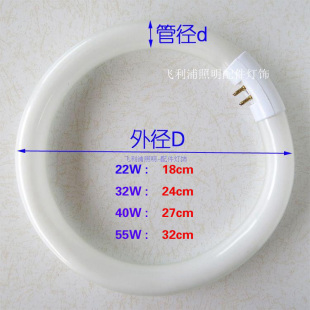 T5T6圆型环形灯管厨房阳台卫生间吸顶灯荧日光三基色22W32W40W瓦