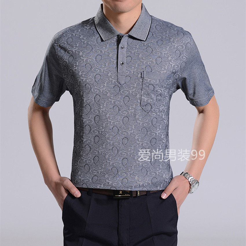 t恤男士 加大码 翻领爸爸装 t恤男式 T恤男中年短袖 中老年棉短袖