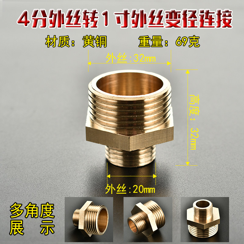 黄铜1寸转4分变6分内外丝变异径接头大小头转换直接水管配件加厚