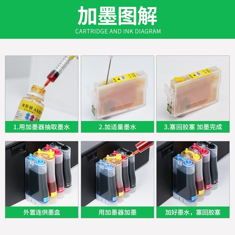 101 T166墨盒可加墨喷墨黑色彩色连供四色补充装 适用爱普生epson打印机墨水ME T1661 通用墨水 顺丰