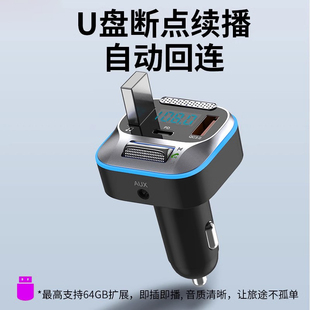 AUX汽车蓝牙u盘转换器无损音质播放器点烟器mp3车载快速充电快充