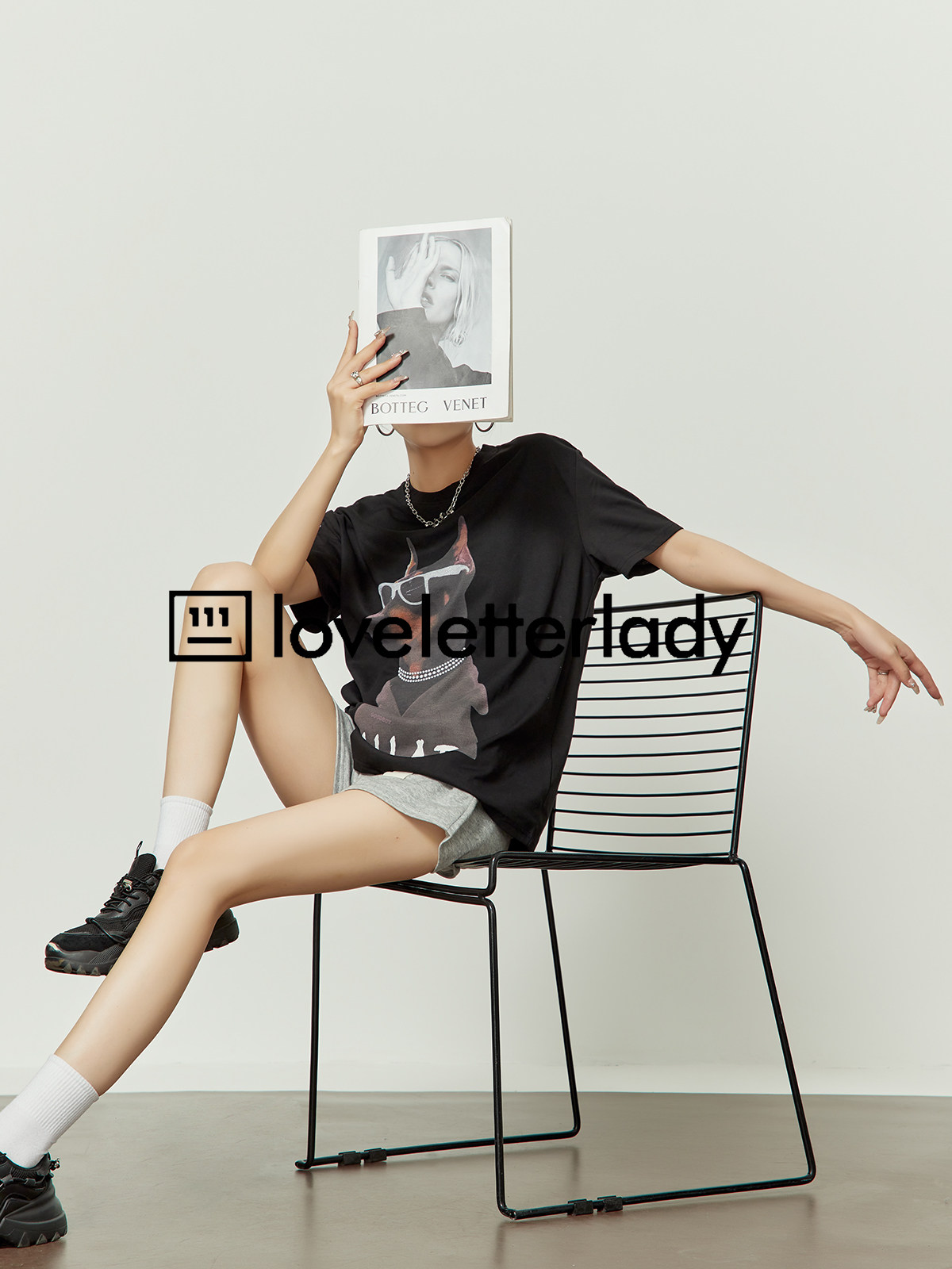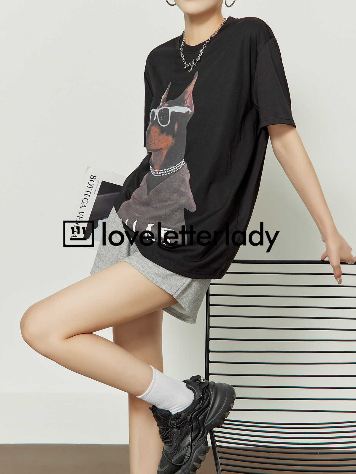 黑色t恤 oversize宽松休闲时尚 周里物狗狗印花T恤女短袖 2025夏新款