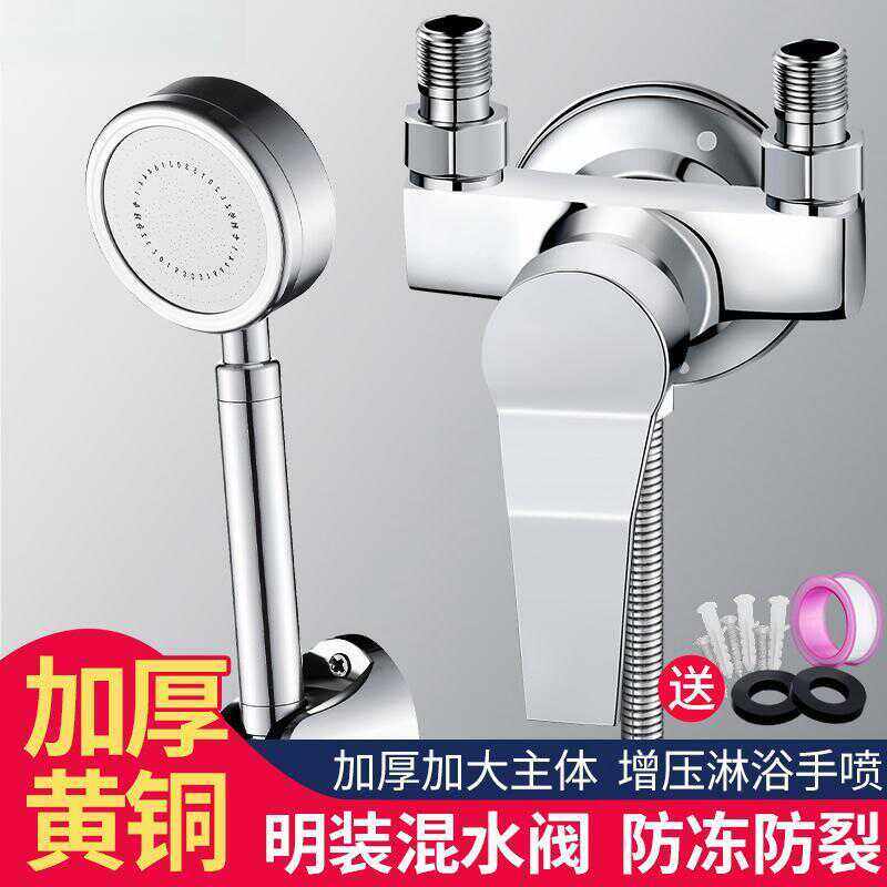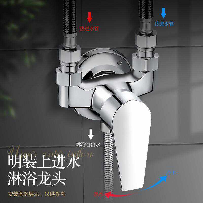 全铜明装 淋浴混水阀冷热水龙头反向上进水太阳能热水器混合阀开关
