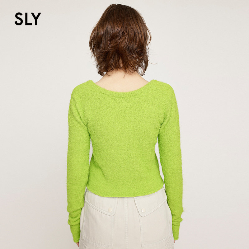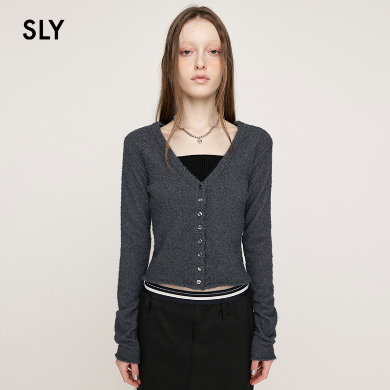 1920 030HSY70 SLY 2024薄荷曼波风慵懒风素色V领针织开衫