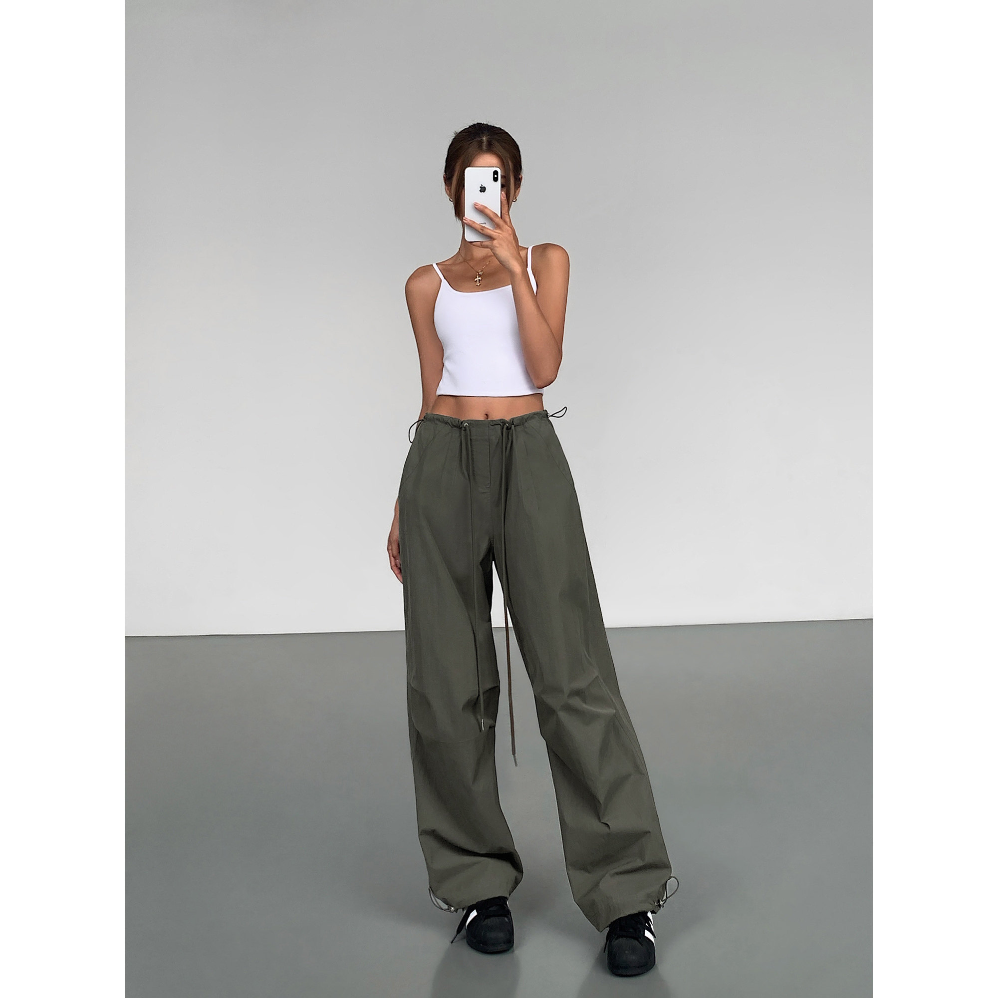 女伞兵速干阔腿松紧腰长裤 ousph 裤 户外登山运动工装 现货5折