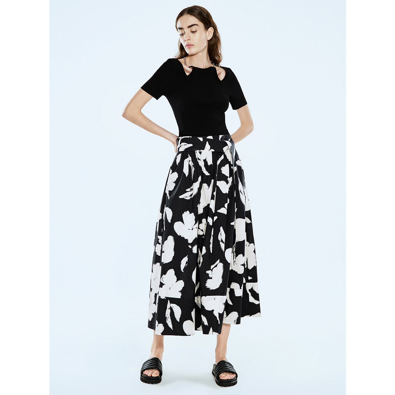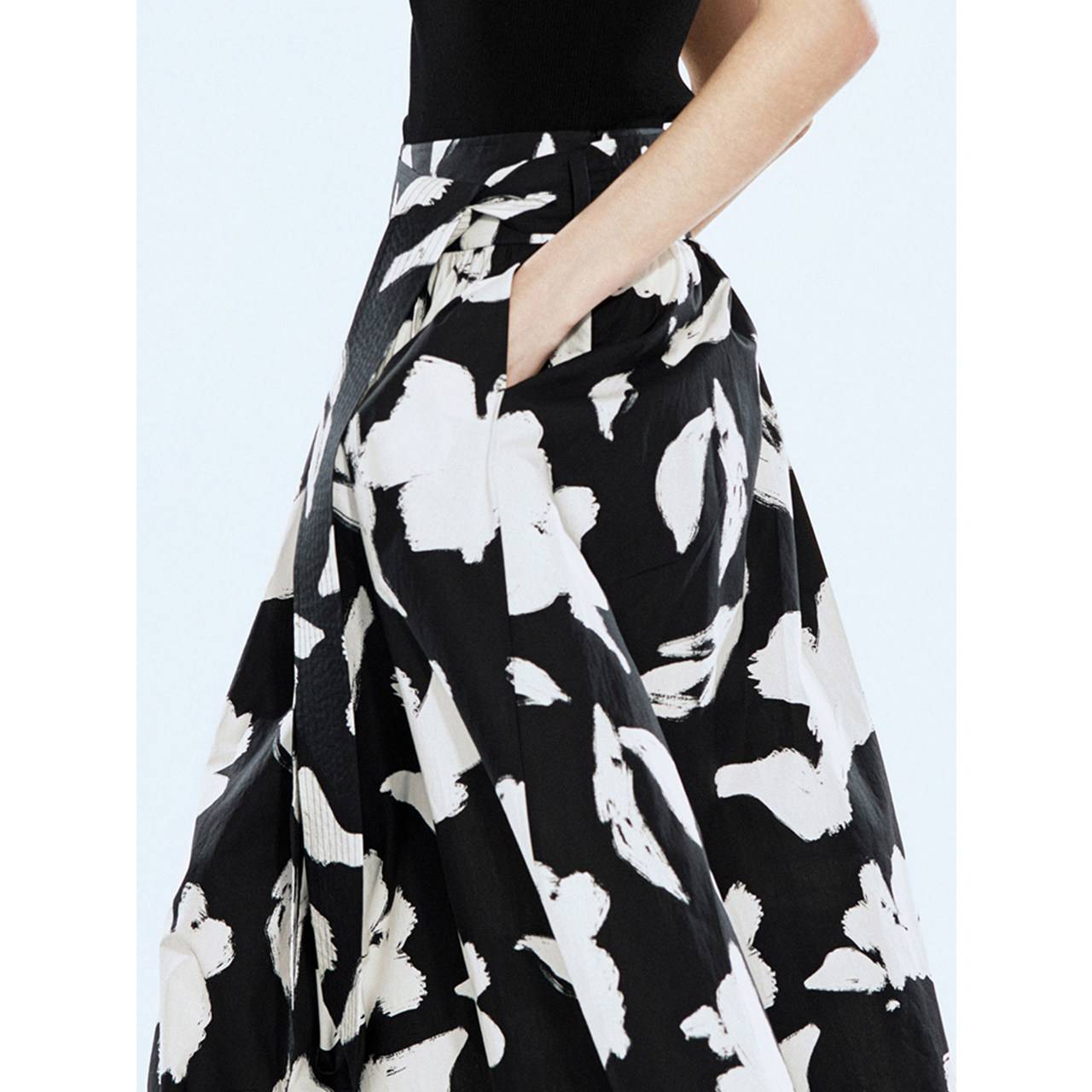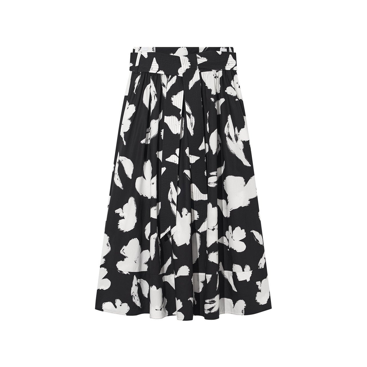 COVERINS黑白印花半身裙长款 CC34250150 a字裙腰带设计棉质夏季