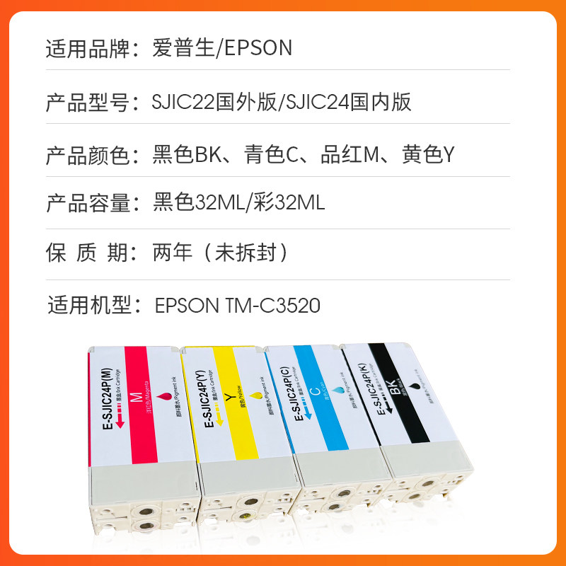 C3500 NBN SJIC22P墨盒EPSON C3520打印机墨盒喷墨标签打印机黑色彩色 适用爱普生SJIC24P墨盒