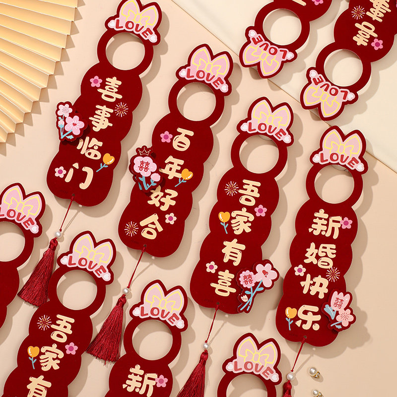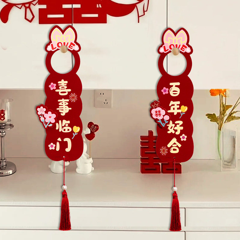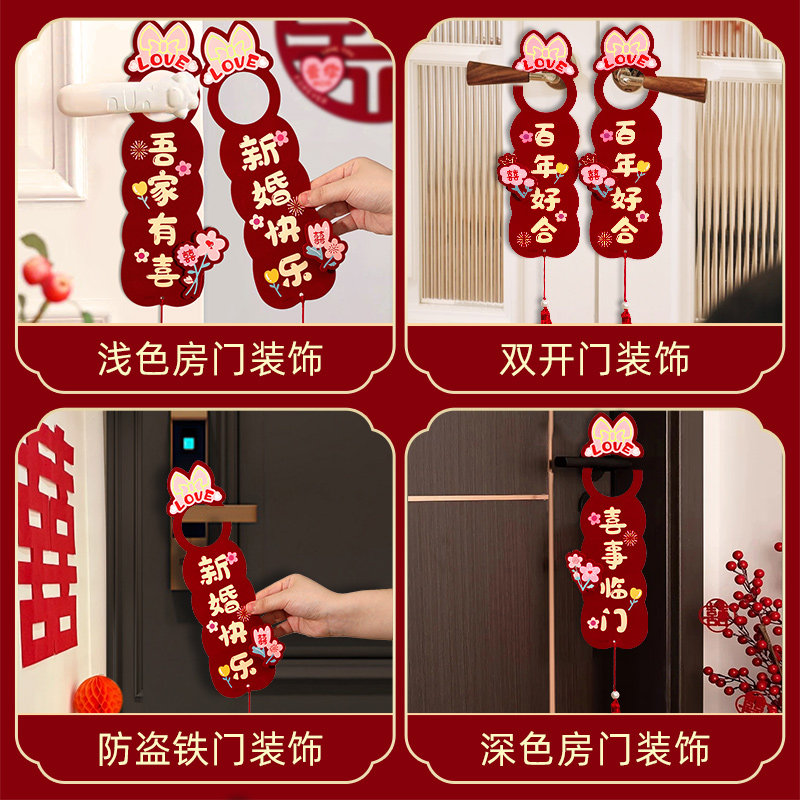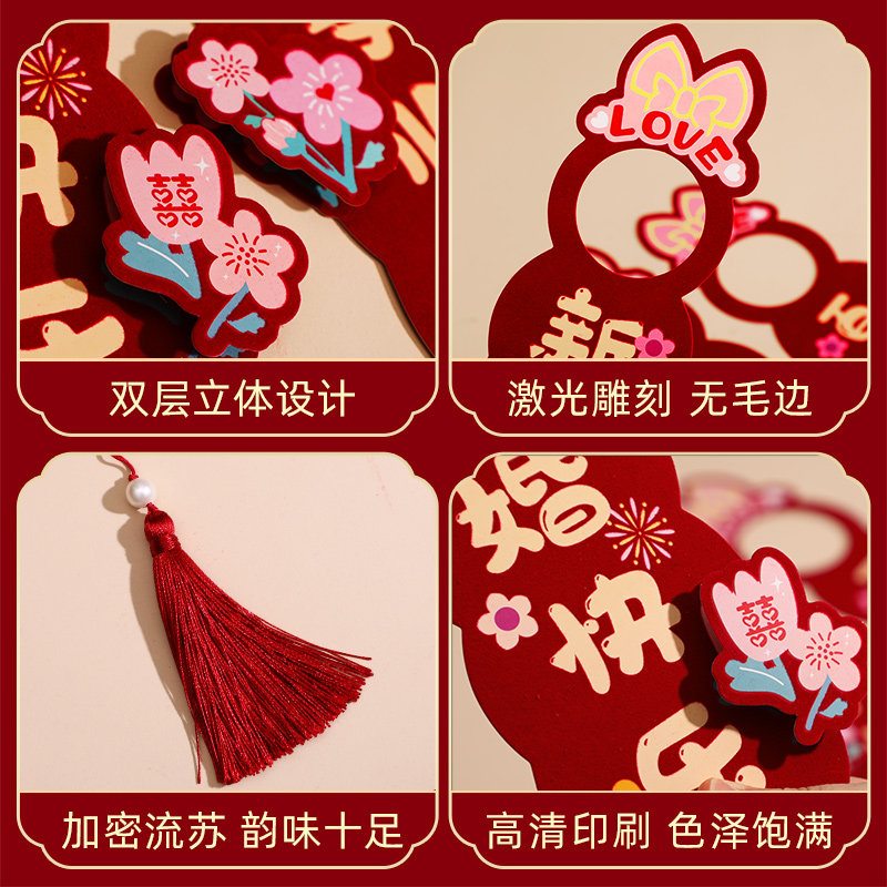 结婚礼长条喜字贴窗帘挂件婚房布置套装 饰房间蝴蝶拉花 新房卧室装