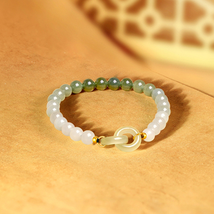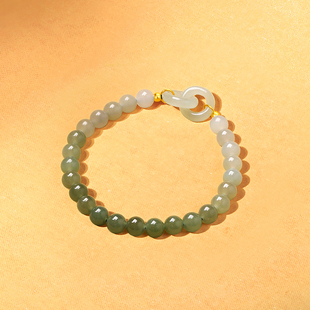 周六福金镶玉手串女双环扣玉石空谷幽兰手链渐变青玉手串新年礼物