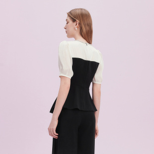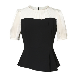 小衫 Lakoradior拉珂蒂异材拼接短袖 ol上衣2025 精致社交