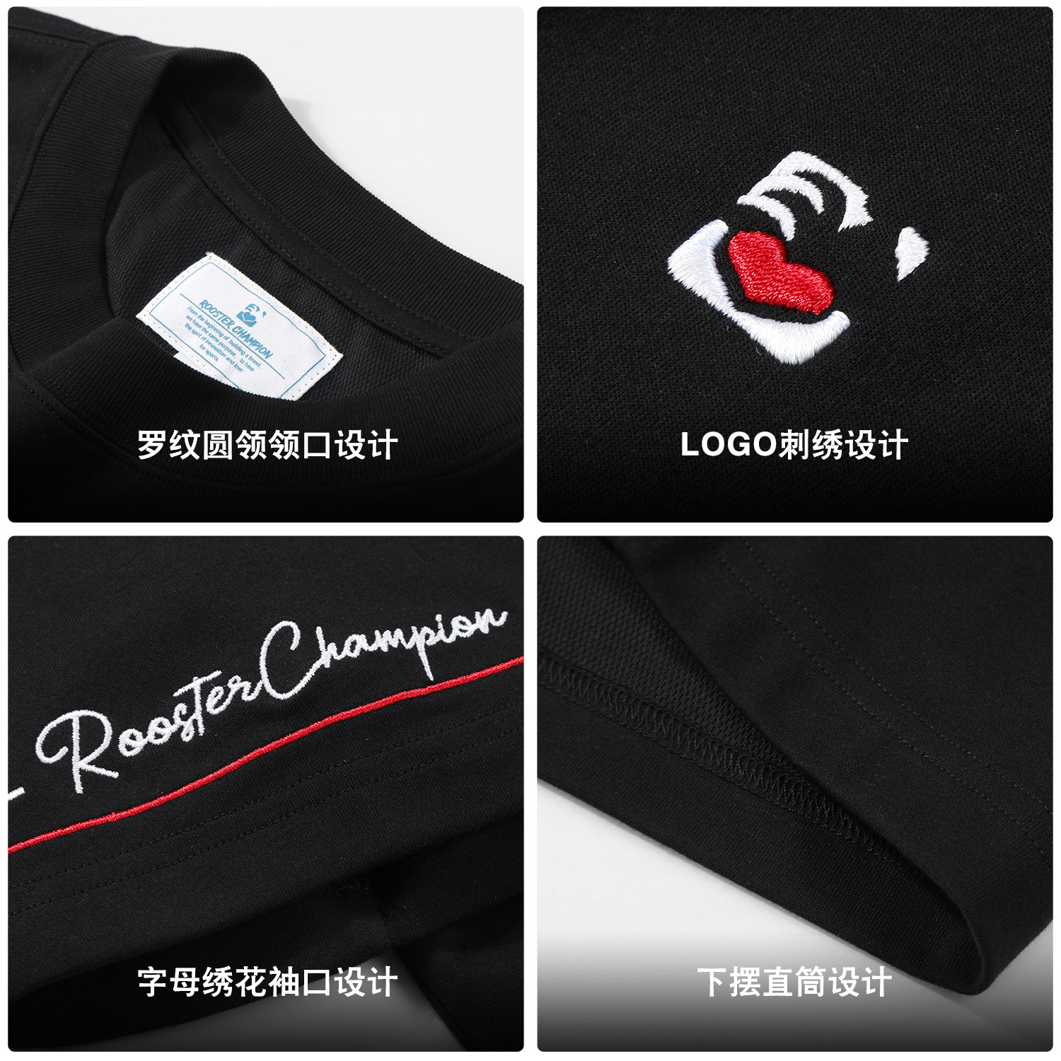 宽松黑色logo刺绣速干情侣半袖 新款 潮 T恤男2025夏季 公鸡冠军短袖