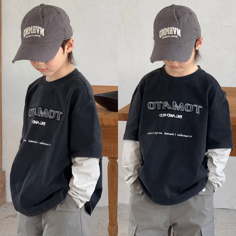 男童女童假两件长袖 潮牌卫衣儿童上衣休闲 t恤25春秋宽松中大童装