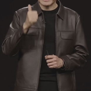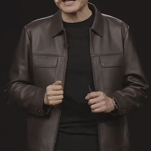 雷军皮衣真皮皮衣海宁绵羊皮翻领夹克雷总明星同款 外套 穿搭春季