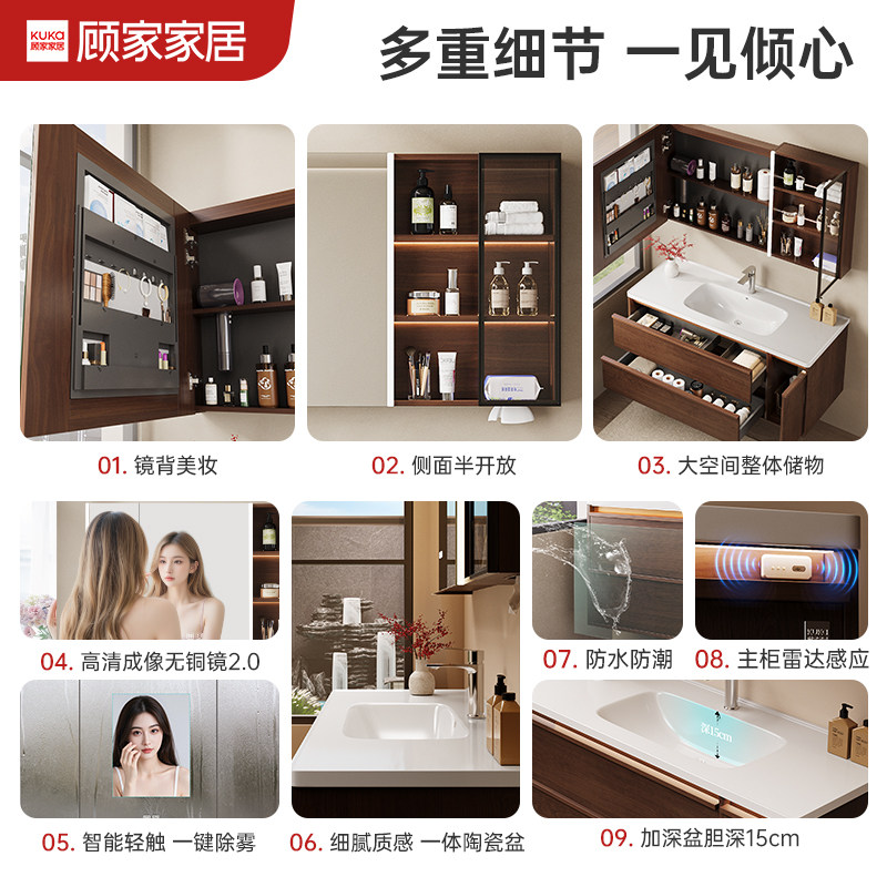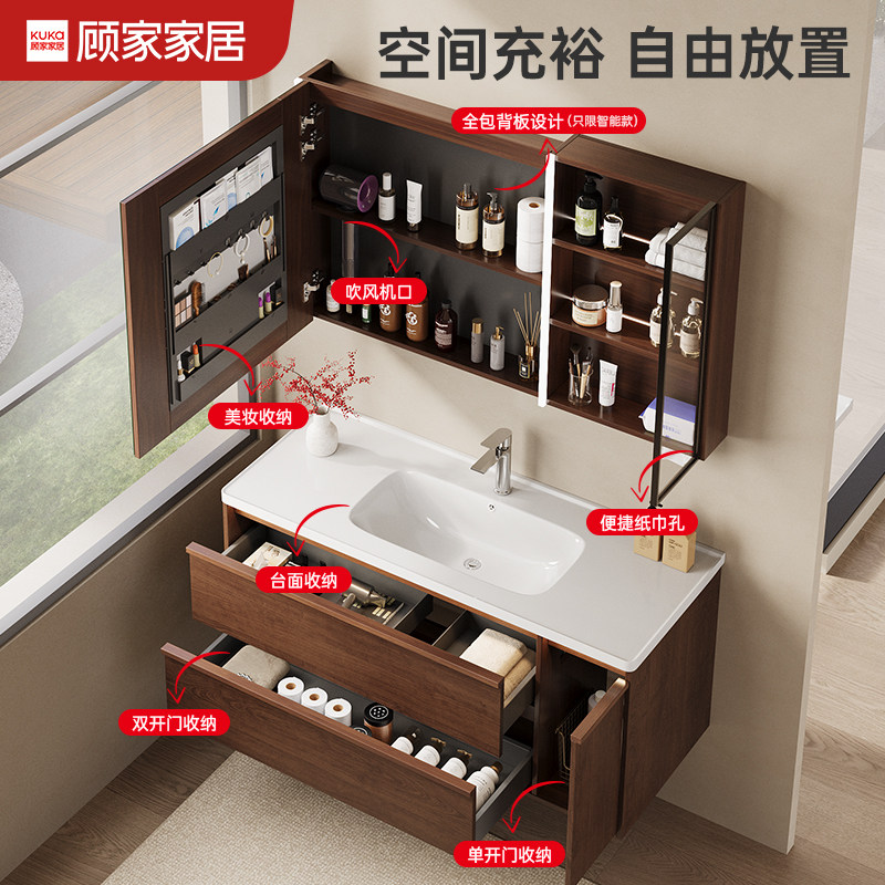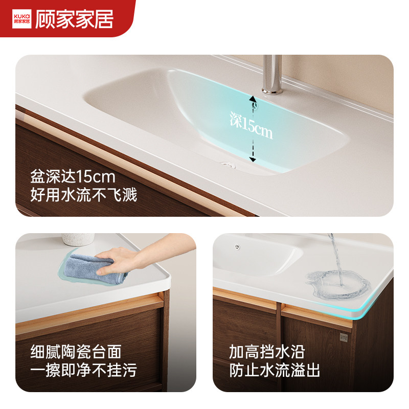 顾家家居陶瓷一体盆中古风浴室柜组合洗手盆柜卫生间卫浴柜洗漱台