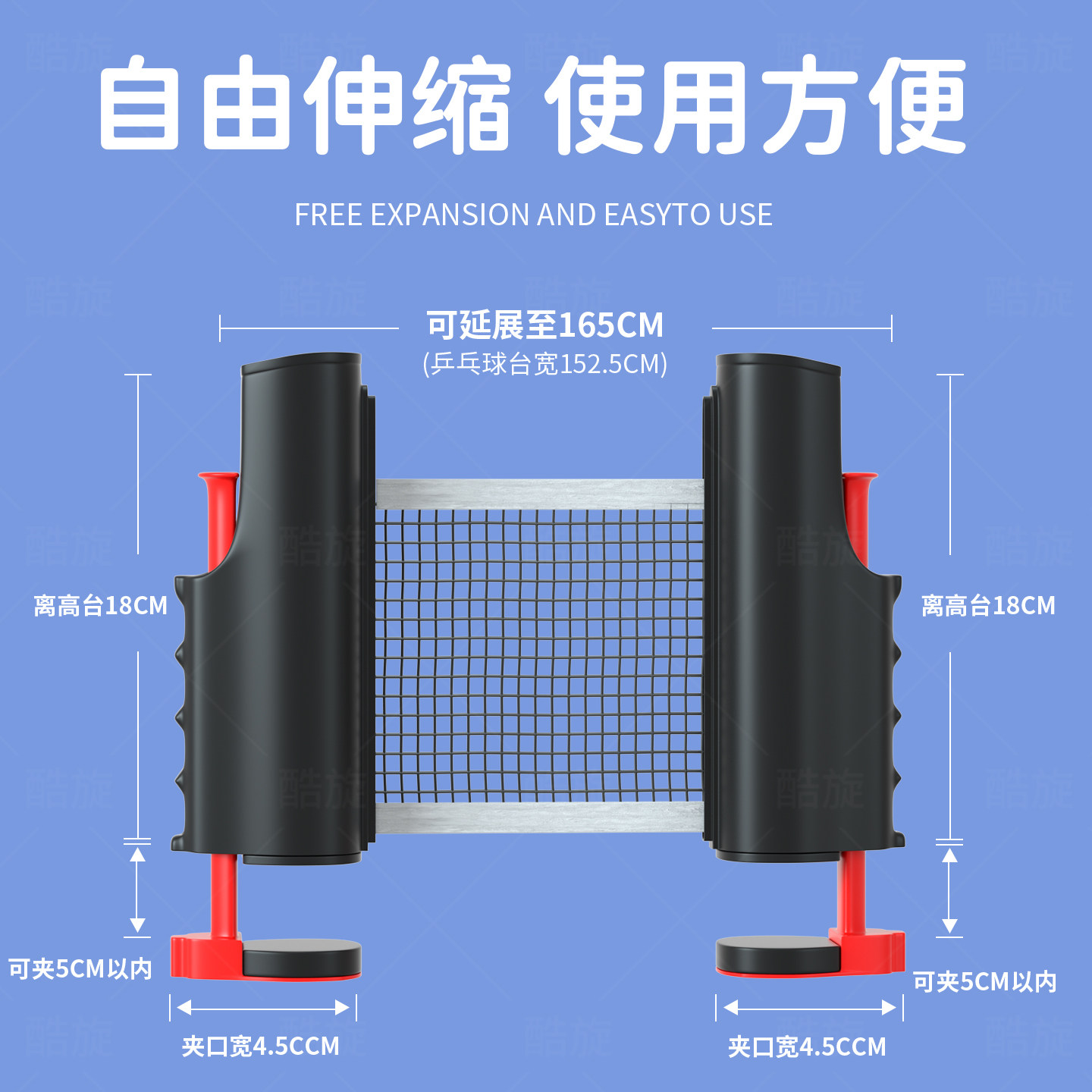 361度乒乓球网架便携式 自由伸缩含网布室内室外通用球桌中间网架
