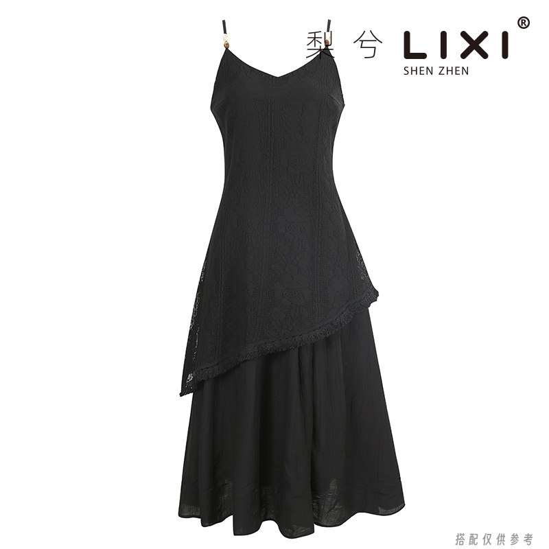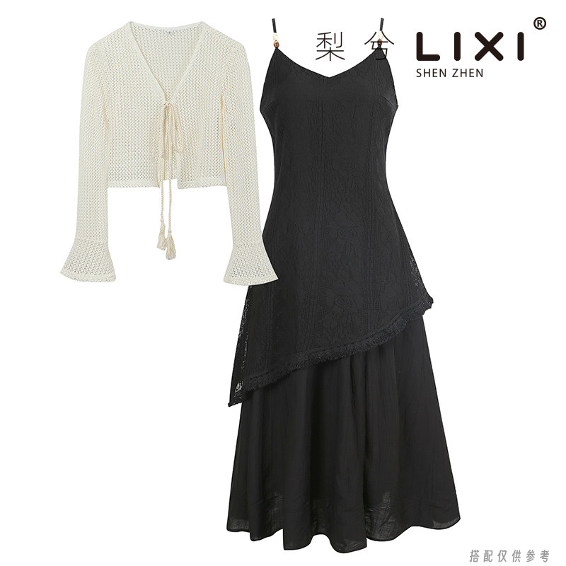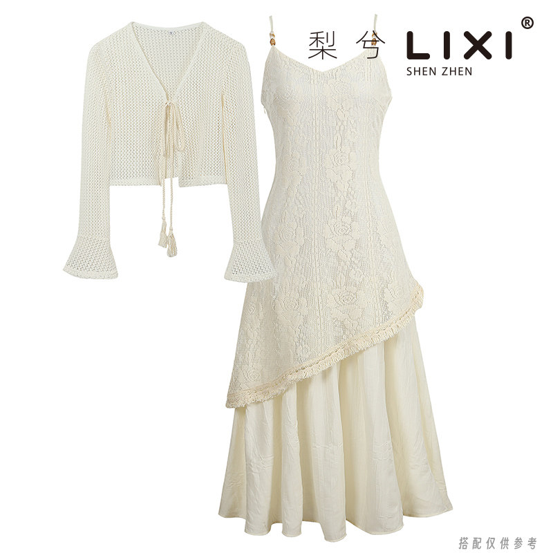 棉质绣花蕾丝吊带连衣裙两件套裙子套装 梨兮新款 新中式 开衫 喇叭袖