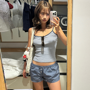 显瘦背心吊带T恤弹力螺纹休闲百搭上衣女辣妹潮 复古修身 F383 美式