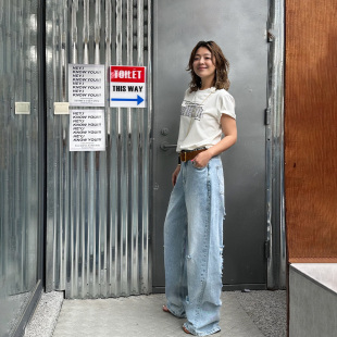 印花T恤女春夏新款 WANG条码 LEDIM 百搭白色短袖 明星同款