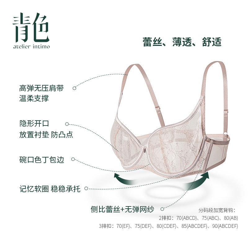 防下垂内衣文胸 青色列维斯蕾丝性感大胸显小聚拢超薄款 池上雨