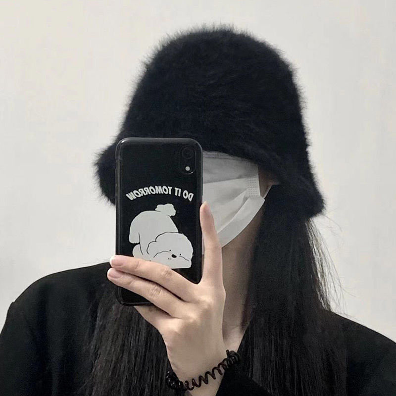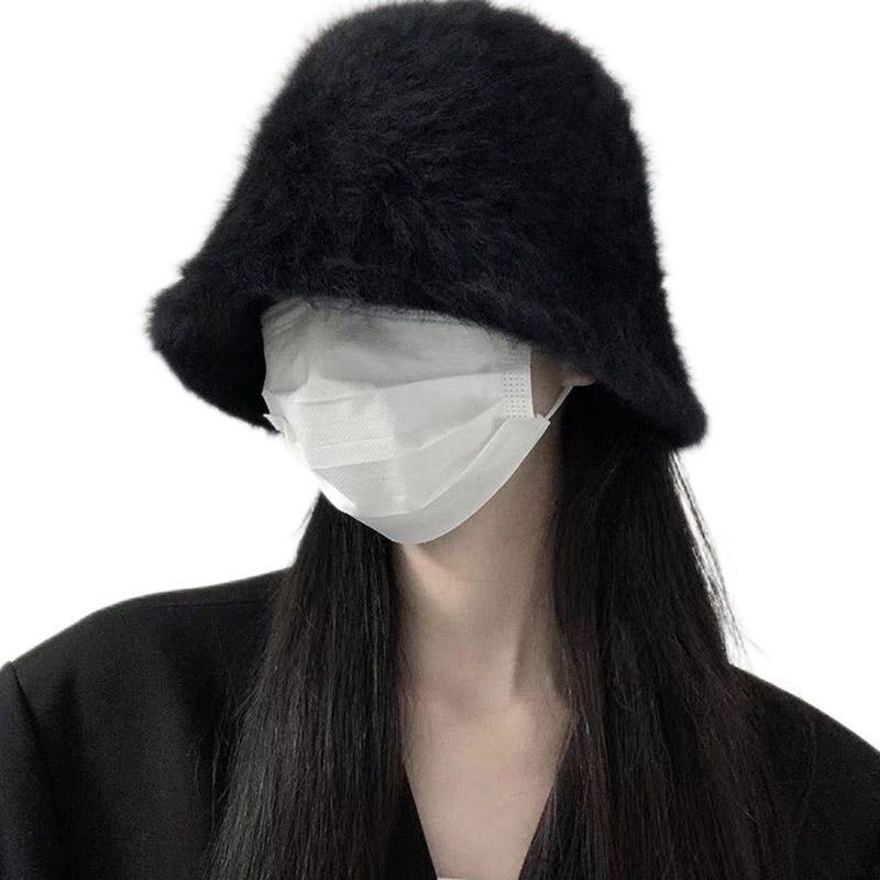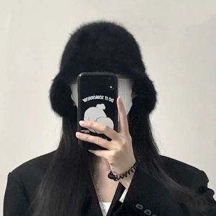 日系渔夫帽子女秋冬季 兔毛绒水桶帽遮脸护耳保暖盆帽百搭显脸小潮