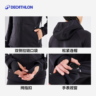 迪卡侬跑步外套女秋季 瑜伽卫衣保暖防风夹克运动上衣卫衣外套SAX1