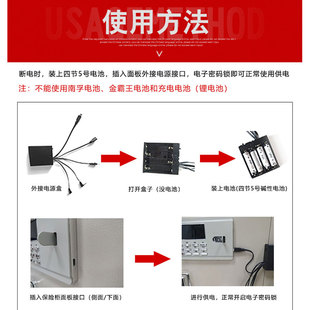 保险箱柜外接应急备用电源内置电池盒充电器6V品牌通用2.5和3.5