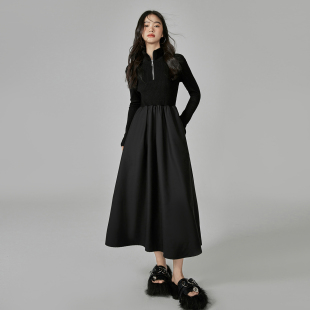 EPTISON连衣裙女2025冬新款 件 高级感气质黑色针织长裙子