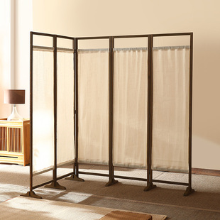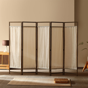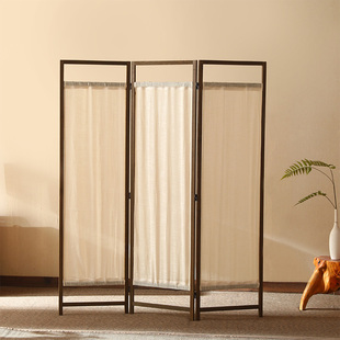 中式 实木亚麻屏风入户隔断客厅摆件遮挡做旧复古简约民俗布艺折屏