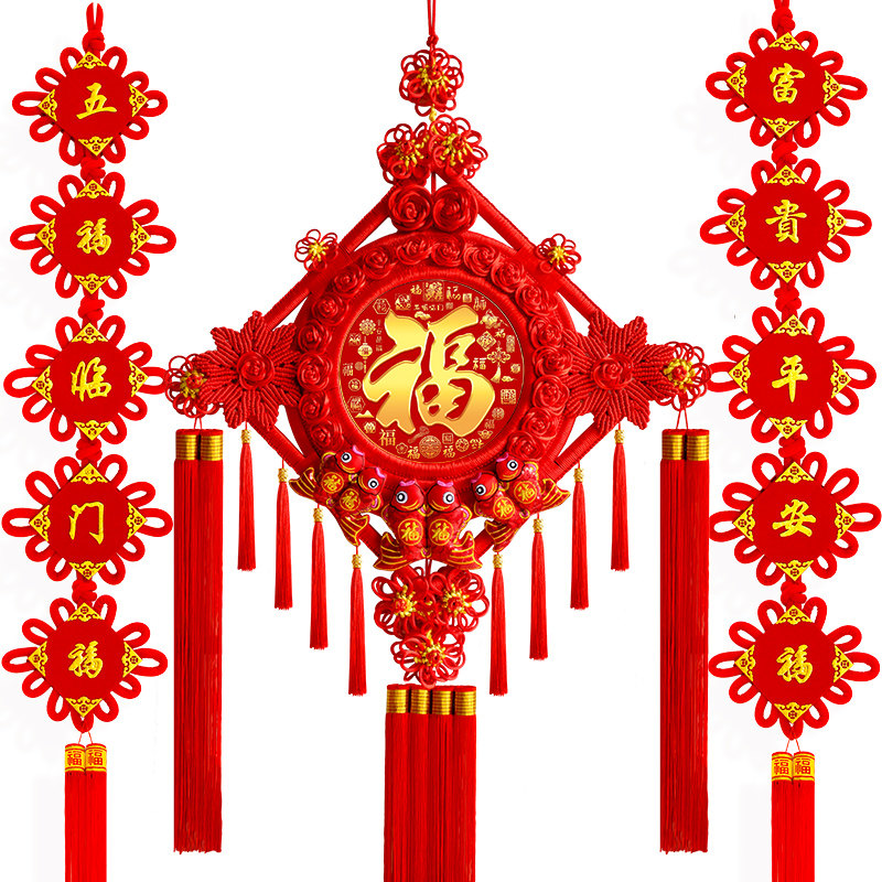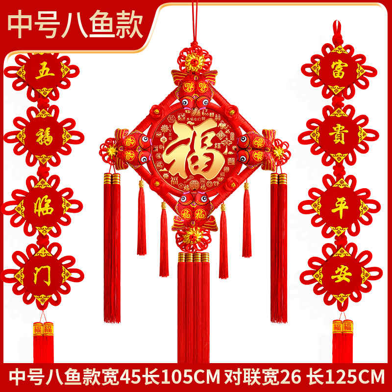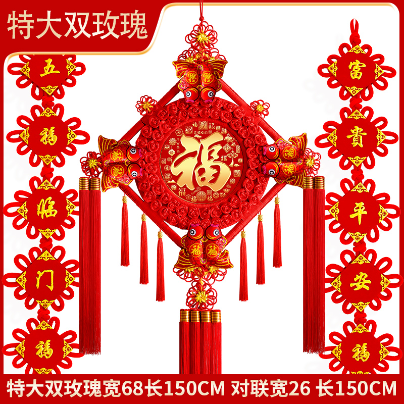 高档中国结挂件客厅大号桃木挂饰福字乔迁玄关背景墙装 饰镇宅对联