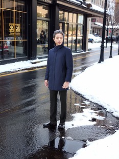 商务短外套爸爸装 连帽时尚 中长款 鸭鸭中老年羽绒服男2025年秋冬季