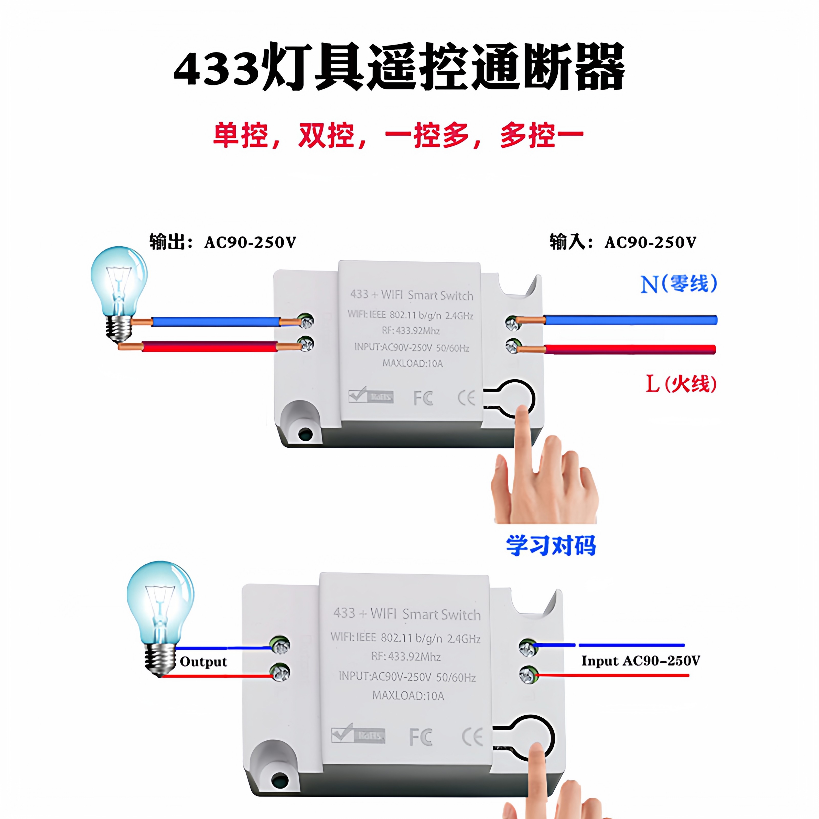 涂鸦WIFI433通断器遥控开关定时WIFI智能开关无线双控灯开关