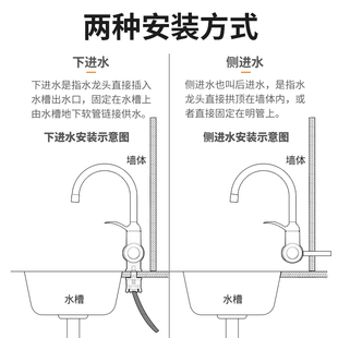 厨房洗菜盆水龙头家用水槽单冷龙头入墙式 快开旋转 侧进洗脸盆立式
