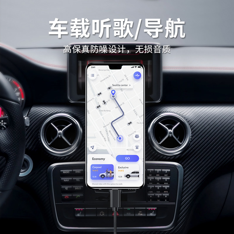 适用华为mate30 c转3.5mm车用typc转接typec公头车载 40pro与汽车音响连接p30pro音箱oppor小米aux音频线type