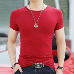 短袖 透气弹力紧身T恤男士 大码 修身 体恤 夏季 圆领潮流纯色时尚 薄款