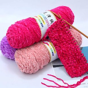 三股光泽绒雪尼尔金丝绒粗毛线编织围巾毛线团钩针手工diy勾拖鞋