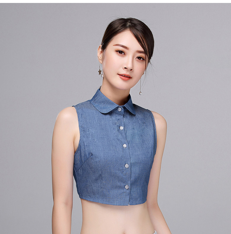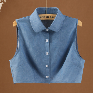 衬衫 饰领秋冬季 领 假领子女百搭假领棉衬衣领牛仔色毛衣装 湘蒙韩版