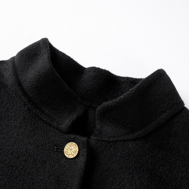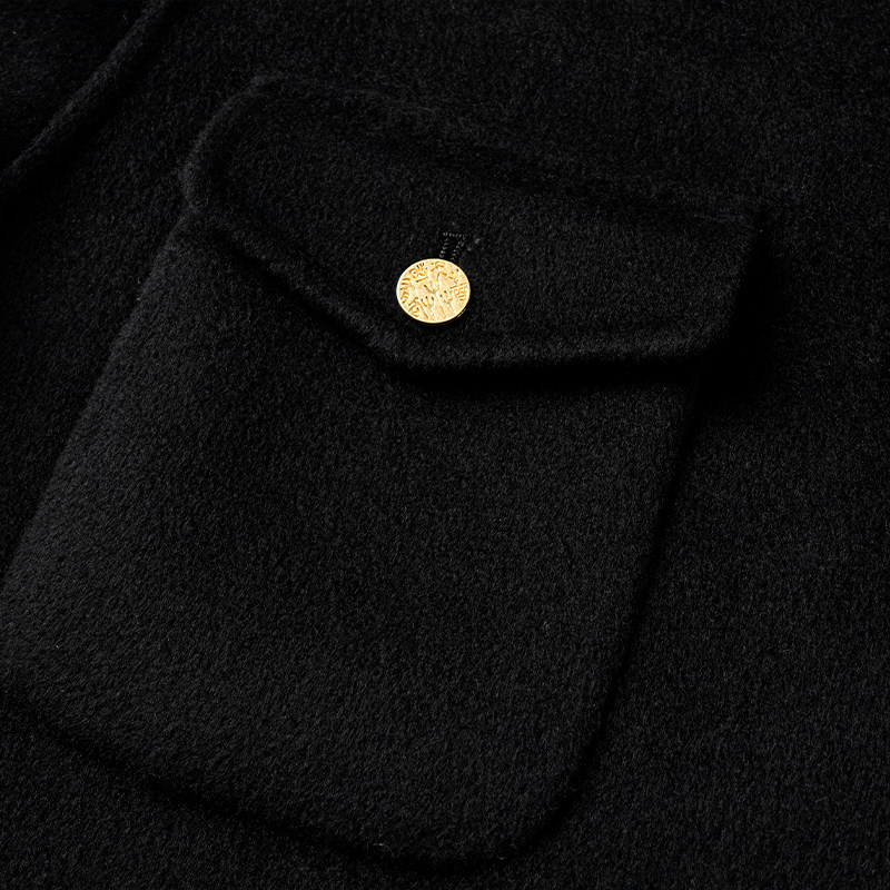 HUI卉阿尔巴斯白绒山羊绒弹黛黑中长款 大衣