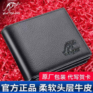 驾驶证卡包 牛皮钱夹有拉链可装 袋鼠域真皮钱包牛皮钱包男士 短款