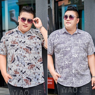 男商务特大号休闲上衣加肥加大半袖 胖子花衬衫 衬衫 短袖 衬衣男 大码
