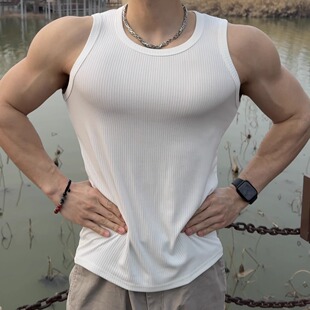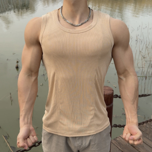 夏季 T恤显大速干弹力篮球宽肩肌理训练跑步健身衣 运动背心男无袖