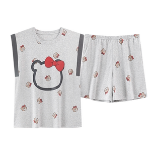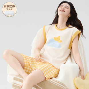 套装 7A抗菌纯棉背心短裤 卡通加大码 夏带胸垫2025新款 少女 睡衣女款