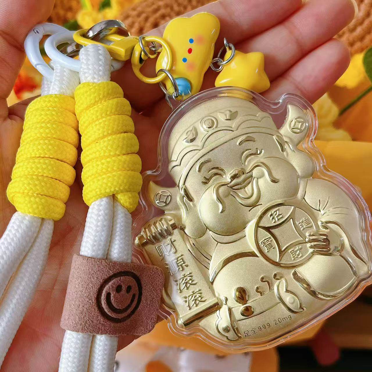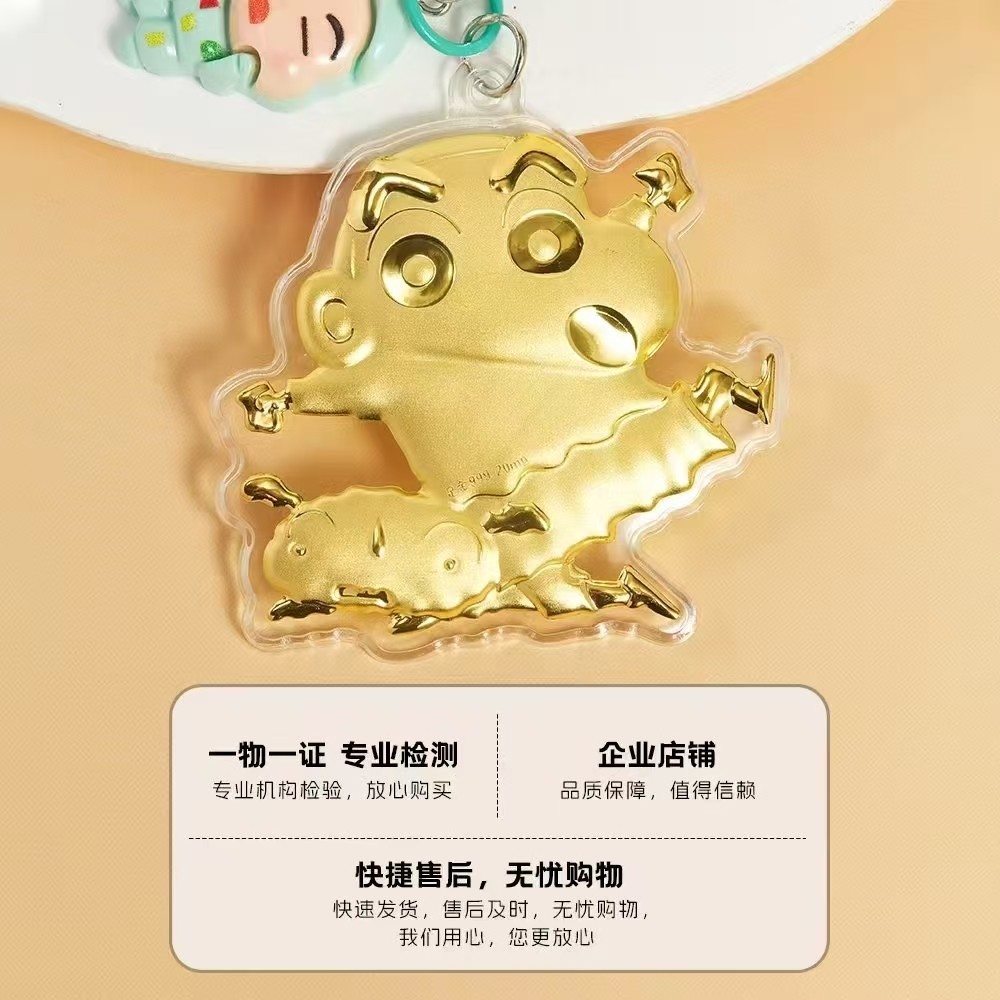 水贝足金999黄金送礼KT猫水豚噜噜周边包蜡笔小新挂绳钥匙扣挂件