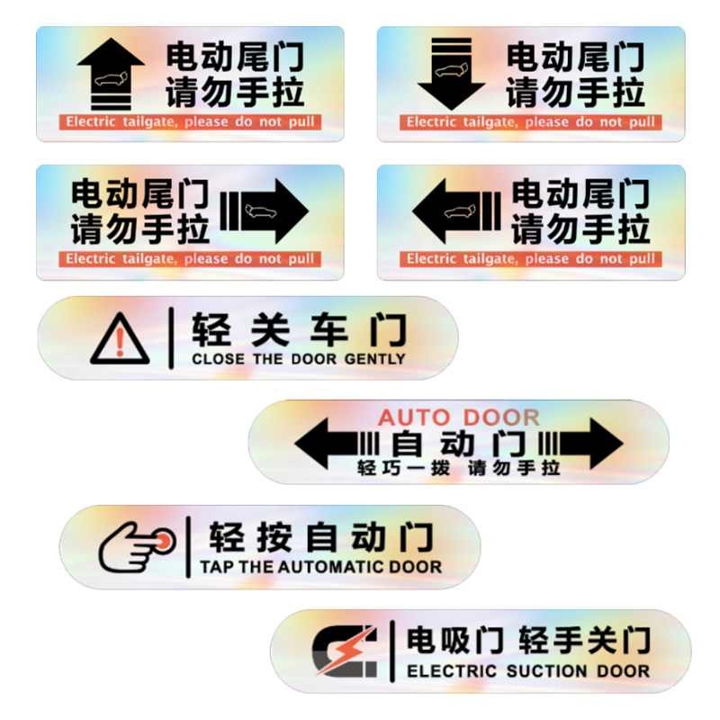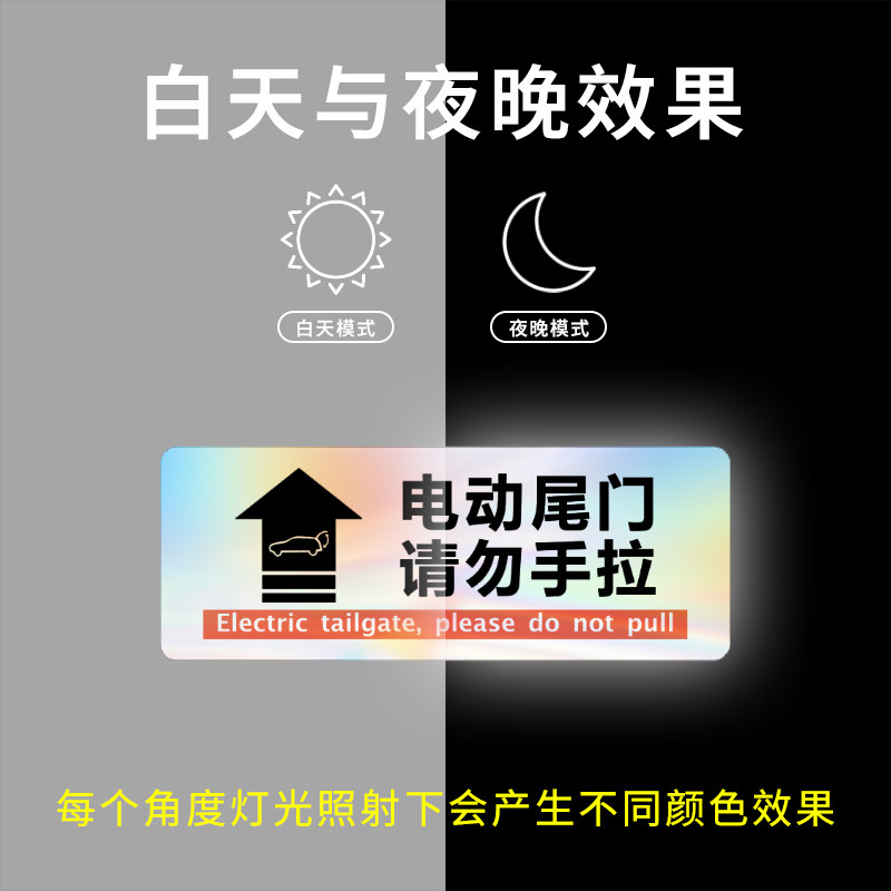 汽车电动尾门警示贴请勿手拉电动门反光贴电吸自动门提示汽车贴纸