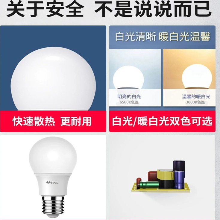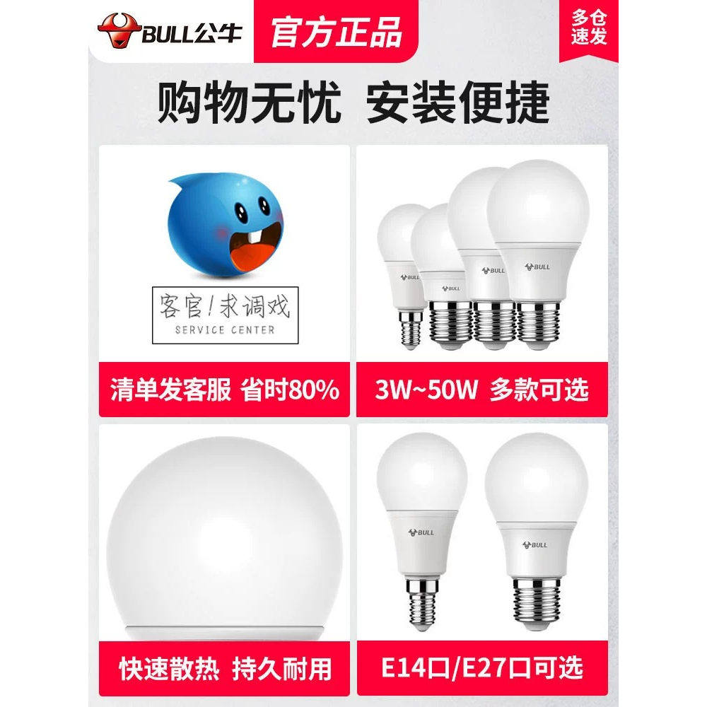 公牛led灯泡螺口E27球泡灯家用超亮节能灯照明卧室白光螺旋口防眩
