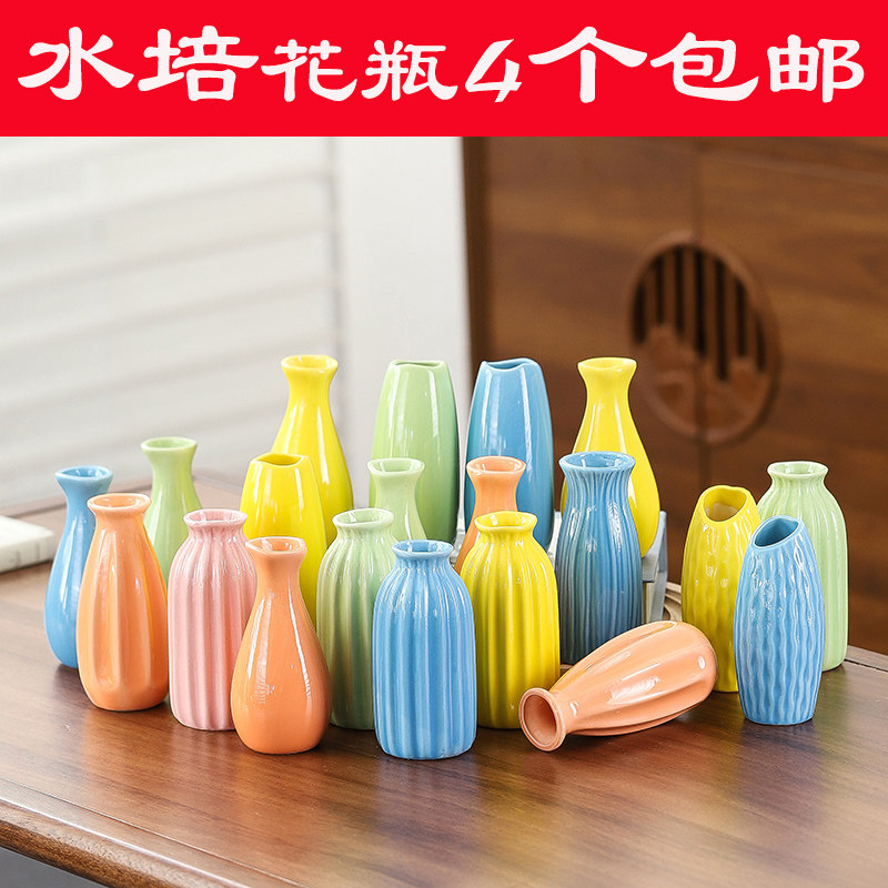 小花瓶陶瓷高级感桌面水培器皿办公室工位水养绿萝简约装 饰品摆件