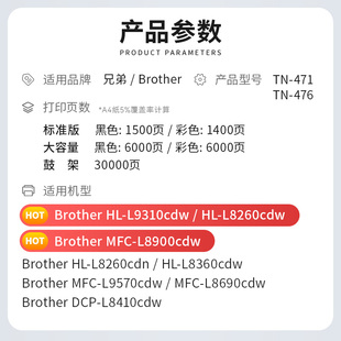L8260CDN L9310CDW 8360硒鼓MFC L9570CDW彩色L8690 L8410 兮夜适用兄弟TN471 8900打印机DCP TN476粉盒HL