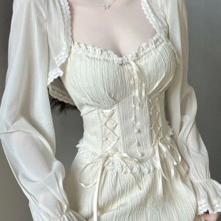 温柔荷叶边系带防晒开衫 雪纺罩衫 夏季 宽松喇叭袖 配吊带裙薄款 法式