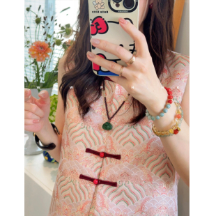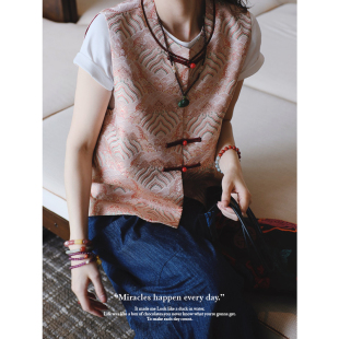 PKH.HK 种草好显白红色系吉祥云纹提花对襟纽袢马夹 特