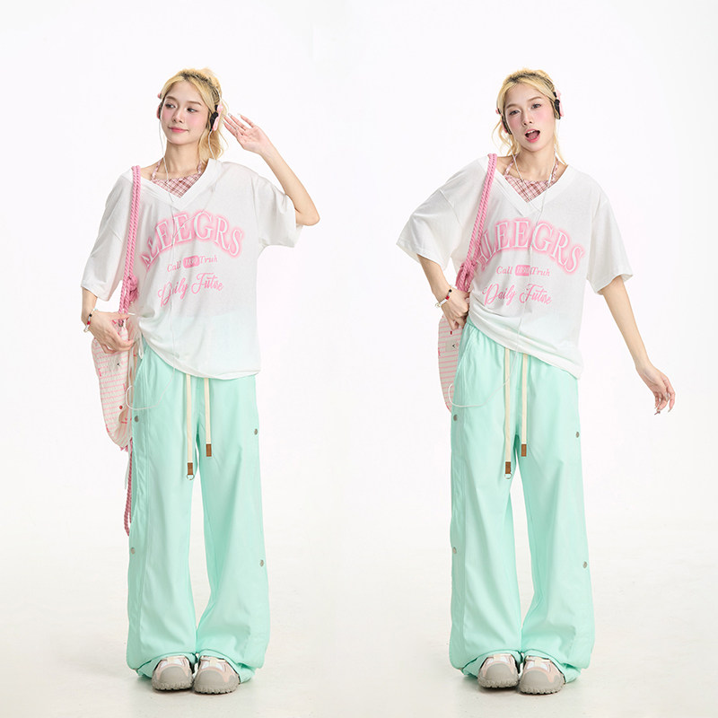 子宽松跳舞直筒休闲长裤 NERESUM多巴胺工装 拼接排扣裤 女美式 裤