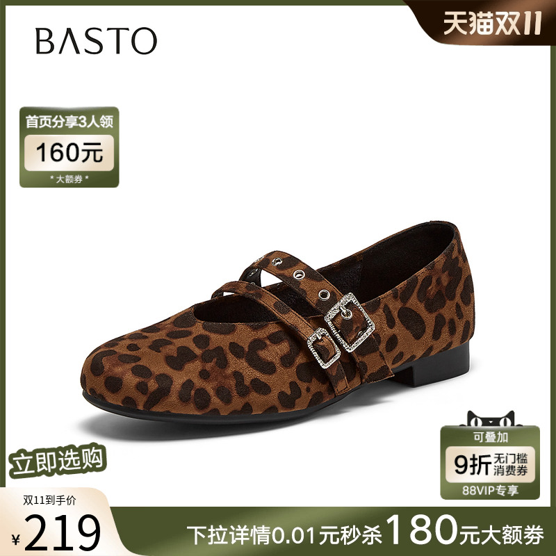 新款 浅口女单鞋 舒适法式 豹纹鞋 B2530CQ5 玛丽珍鞋 百思图2025秋季